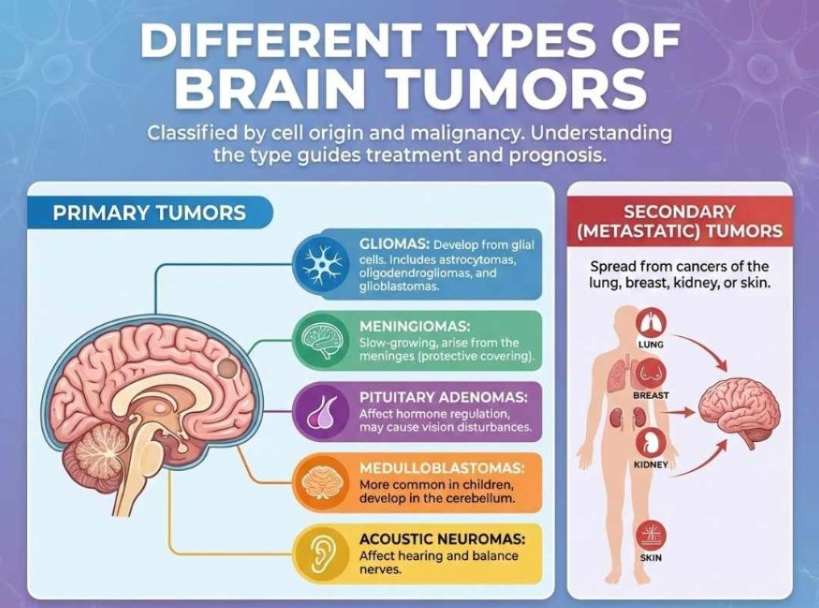Regardless of type, tumors can affect vital brain functions such as movement, speech, memory, and vision. Early evaluation by an experienced neurosurgeon is critical.