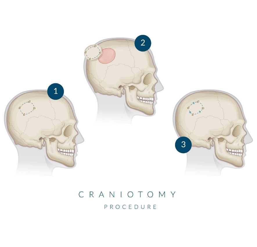 This is the most common procedure where a small section of skull is temporarily removed to access and remove the tumor.
